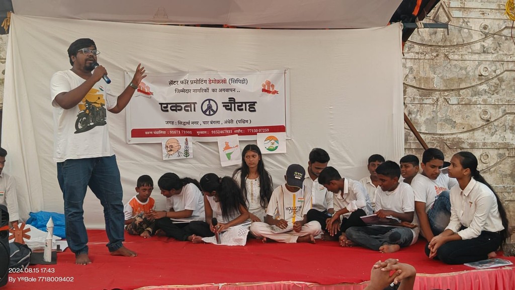 14th February as Utsav Premacha or Festival of Love with the motto “Pyaar karo Nafrat nahin”: While a communal social agenda is being spread in the country through hate, against inter-caste, and inter-community marriages, CPD joins hands with fellow grassroots organisers in Mumbai to make a bold declaration of love through the Utsav Premacha. These celebrations bring young hearts together on Valentine’s Day in a public space to uphold the values of humanity and equality – across lines of identity differences. Starting with just a handful of attendees in 2021, our gatherings have grown to attract hundreds of youth, showing that even a small initiative can have a powerful impact.