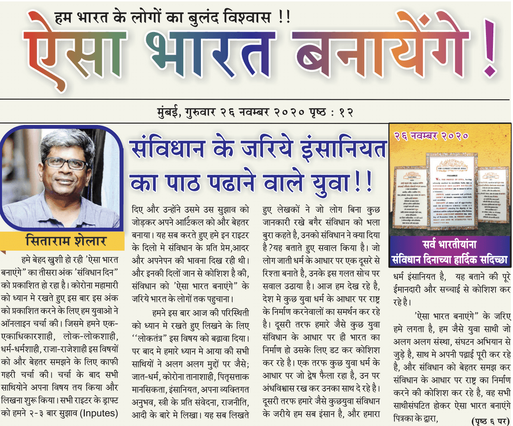 Aisa Bharat Banayenge is a multi-lingual zine built through community collaboration to voice concerns, ideas and reflections of young Indians who dream of a democratic India built on constitutional values.